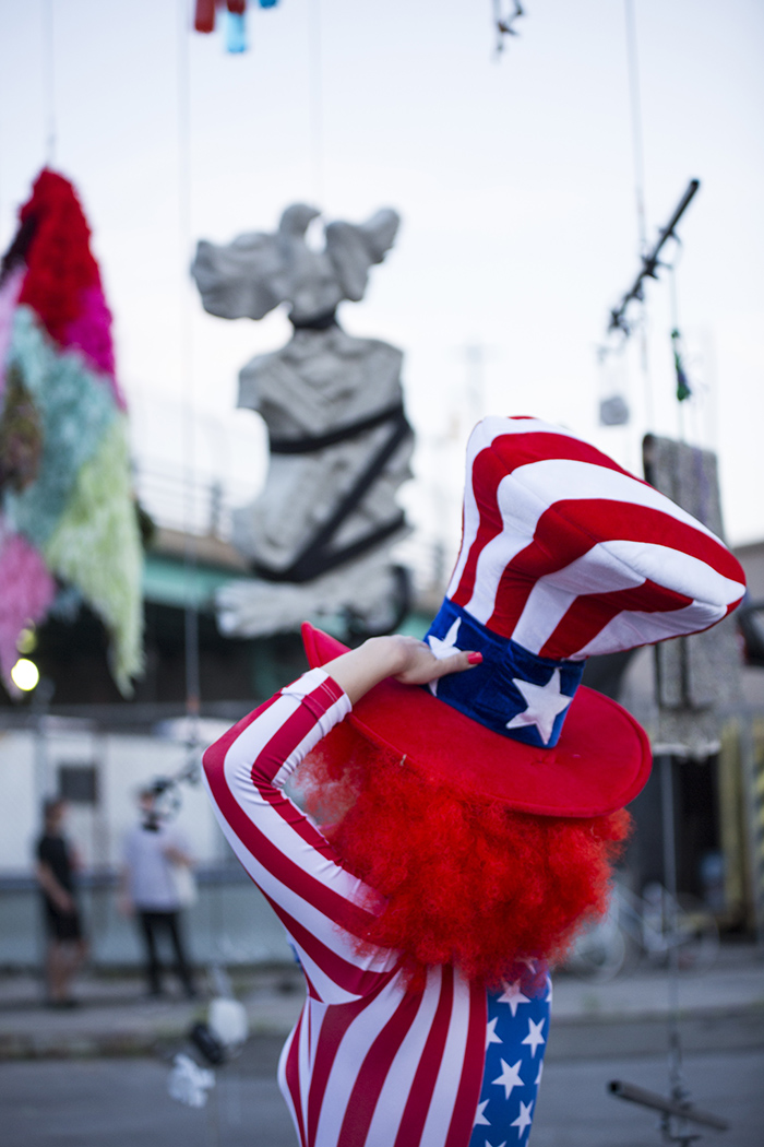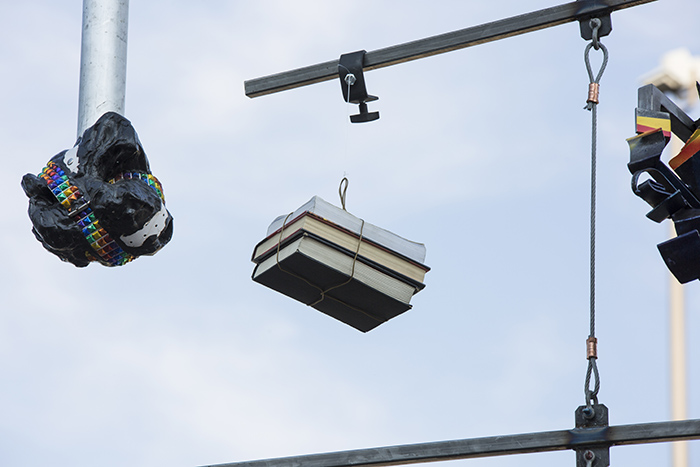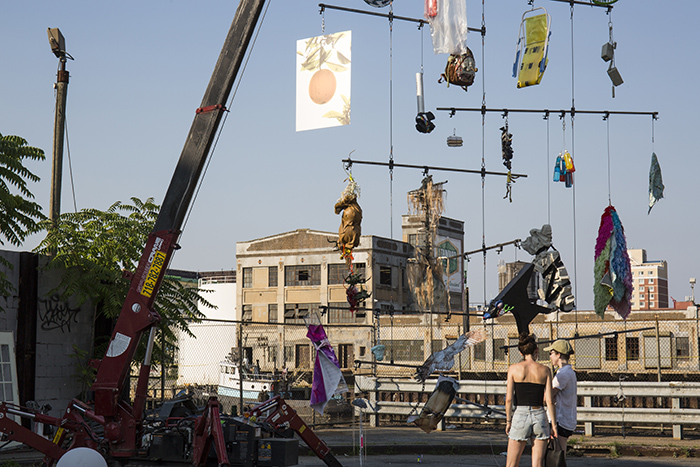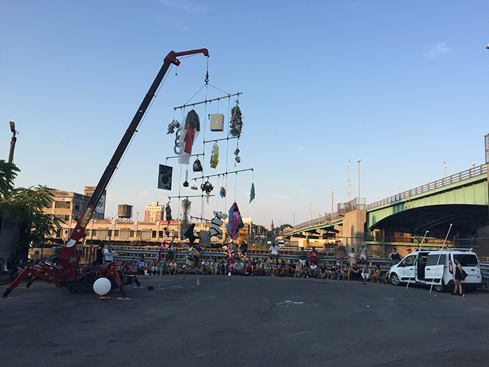 For Crane Game I have invited a group of artists to show objects hanging from a Calder-esque mobile, which will be suspended from a crane during the show on July 1. Under the mobile, performers will use the unique character of the space and spectacle as a stage.