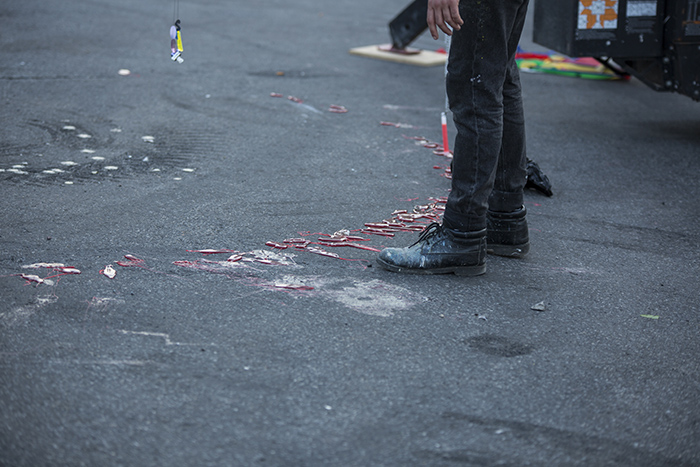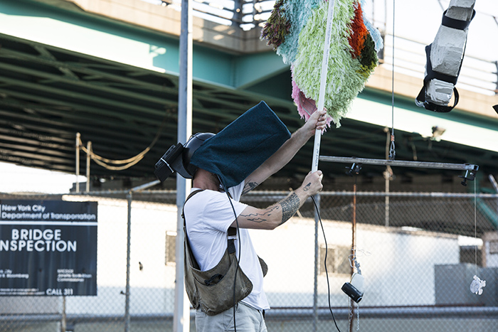 Every inch of this city is slowly being ripped apart and pieced together with construction equipment. To bring these same tools into a sliver of the city that is wholly undesirable warrants using those tools for unintended purposes. This display will simultaneously create a singular work and an archive of works specific to the site, thereby engendering connection to the space, and an ephemeral infrastructure to be taken away at the end of the day.