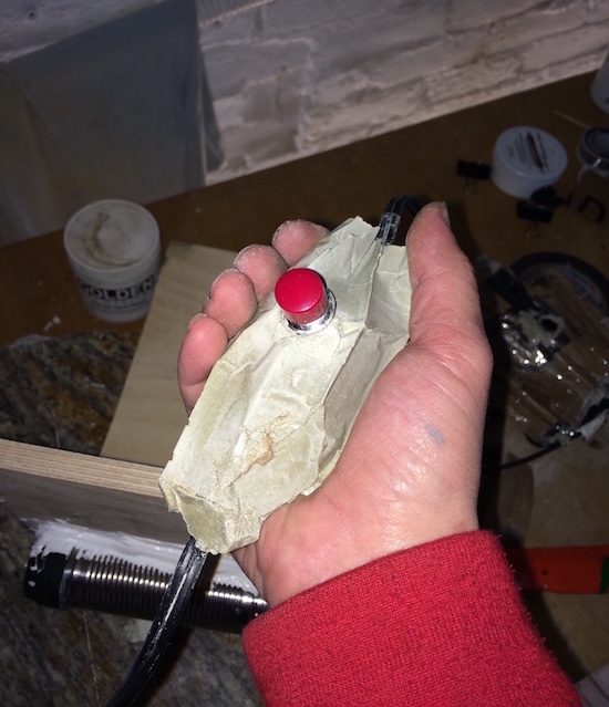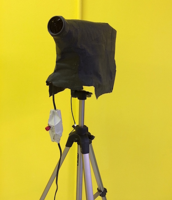 paper maché, figurine, mylar, tripod, electronic